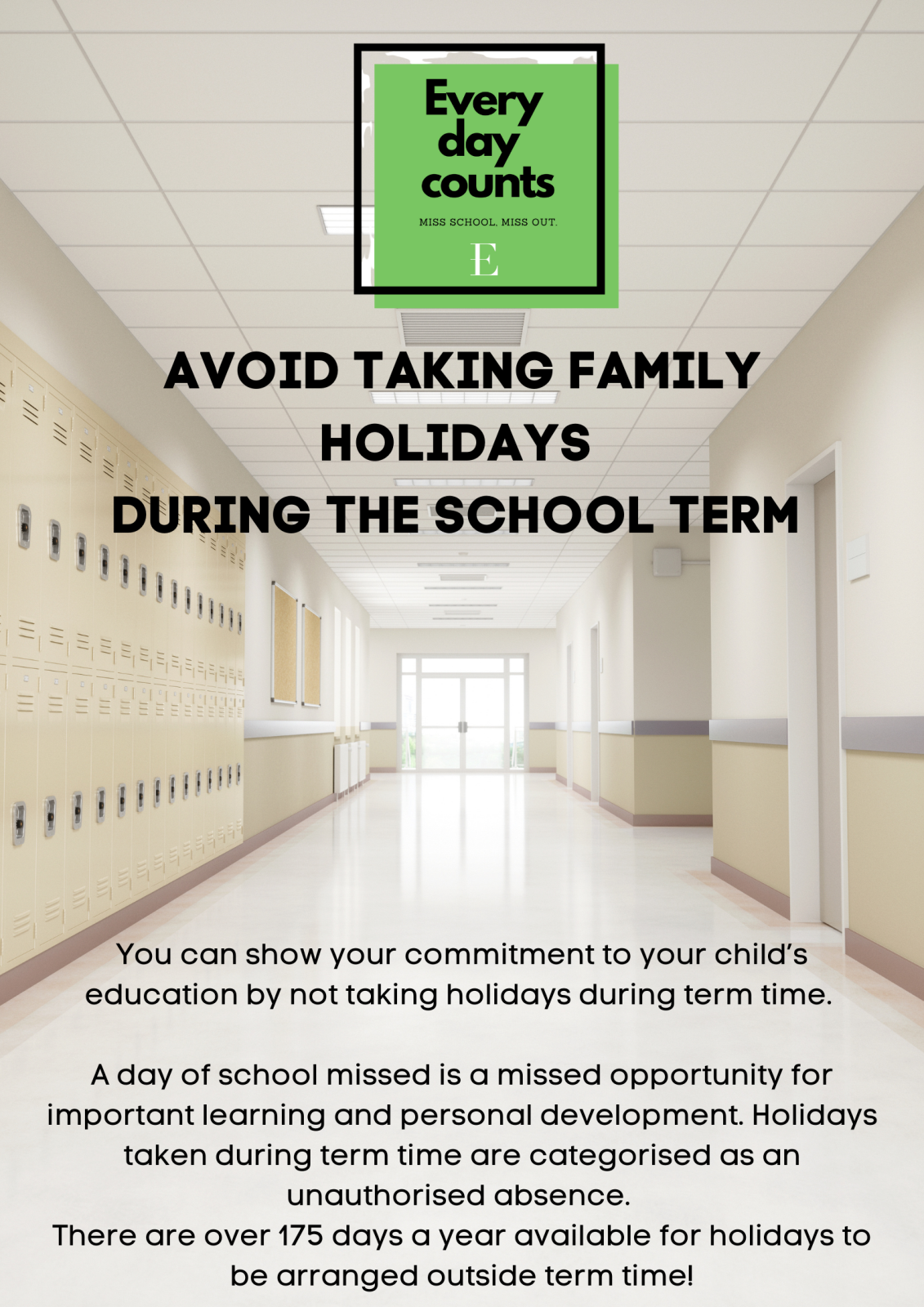 A child who misses 2 days of school a month is considered to have 'persistent absence' and will trigger the beginning of our attendance procedure and could have profound consequences for parents and carers.
